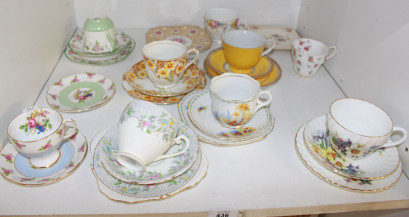 a cup and saucer plus odd pieces, most are English, one cup has a hairline crack -