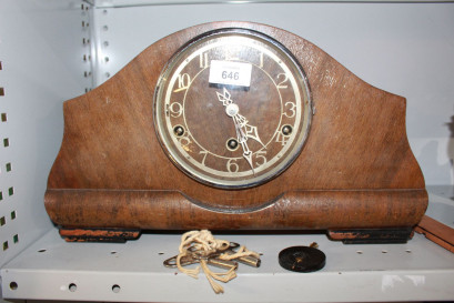 made by Enfield, England, 3 train movement, comes with key and pendulum -