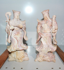 Lot Description:2 carved Shoushan stone figures of wisemen