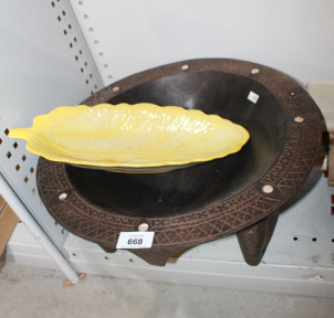 Lot #668 - Carved wooden cave bowl, on 4 feet with inlaid