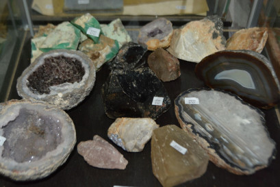 incl. amethyst thunder eggs, polished agate slices, gypsum quartz, etc -