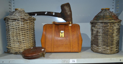 1 AF chip to rim, leather bag by Bruno Conti, vintage tape measure and a tribal tool made from timber and woven cane -