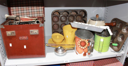 Lot #873 - Shelf: assorted kitchenalia incl. ice-cube tray