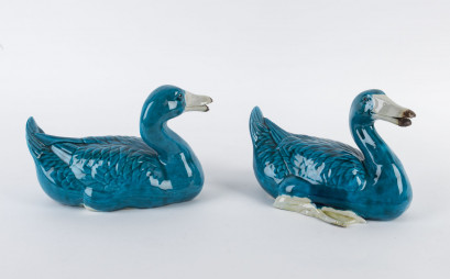 Lot Description:A pair of Chinese turquoise glazed ceramic ducks, 20th century
