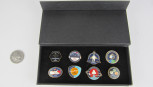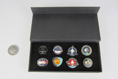 Lot Description:OMEGA & SPACE:Eeight boxed enamel badges commemorating the 60th Anniversary of the 1957 Omegas 'Speedmaster'