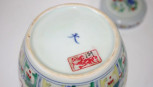 polychrome dragon decorated, character marks to base, (height 12cm approx). -