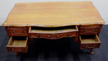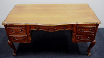with 5 drawers with scroll carving, approx 146cm wide, 77cm deep and 74cm high. -