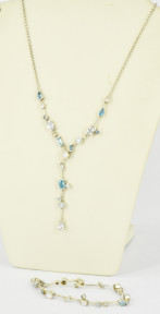 comprising necklace and bracelet, featuring mother-of-pearls and blue topaz on sterling silver. Weight 25.7g -