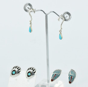American Indian design set with turquoise, on sterling silver. Weight 6.7g. -