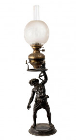 Lot Description:An unusual grand tour bronze banquet lamp modelled as Silenius and the Serpent, late 19th century