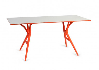 Lot Description:A Kartell thermoplastic and honey comb aluminium orange 'Spoon' trestle desk