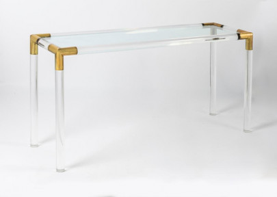 Lot Description:An acrylic and brass glass top console table, circa 1970