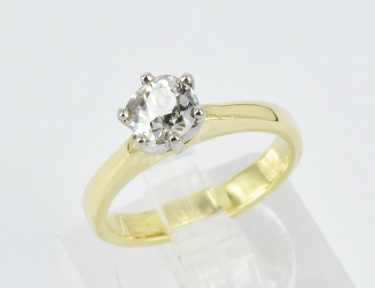 old cut diamond of approx. 0.92ct, claws mounted, set in 18ct yellow gold. Size K-L. Weight 4.5g. -