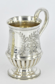 raised on circular base, heightened in gilt on the inside, well decorated with leaves. Hilliard & Thomason, Birmingham, 1890. Height 9cm. Weight 70.1g. -