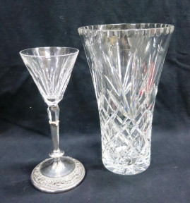 Lot #375 - A Walker & Hall Silver Plate Crystal Glass & A Crystal Trumpet Vase