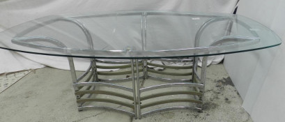 Lot Description:A Glass Topped Dining Table with a Chrome Base