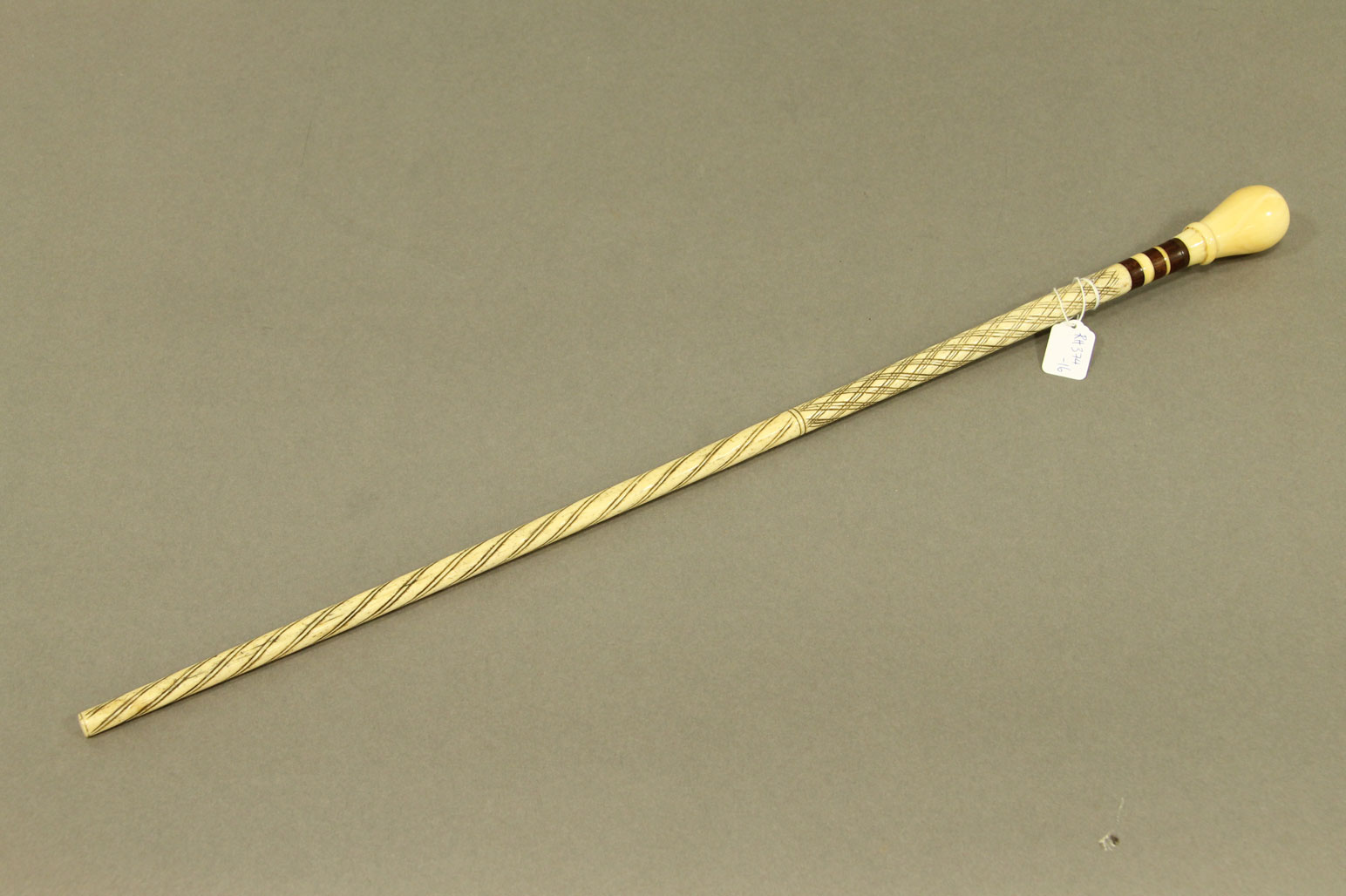 Lot Description:A 19th Century Etched Marine Ivory Swagger Stick