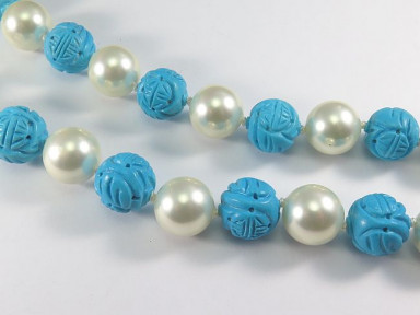 Lot Description:A Faux Pearl and Turquoise Colour Bead Necklace