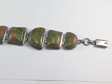 cryptocrystalline quartz sections hinged with ring links and box and tongue clasp. -