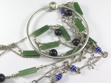 one neckchain with nephrite jade, the other with enamel. (3) -