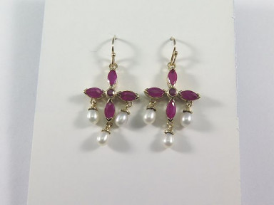 Lot Description:A Pair of Ruby and Pearl Drop Earrings