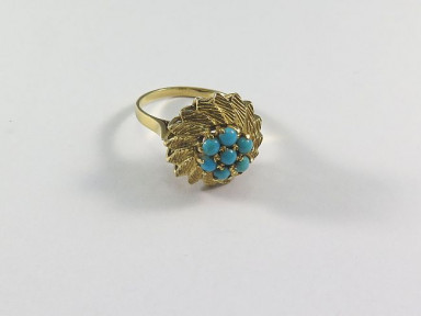 Lot Description:A Turquoise and 18ct Gold Flower Cluster Ring