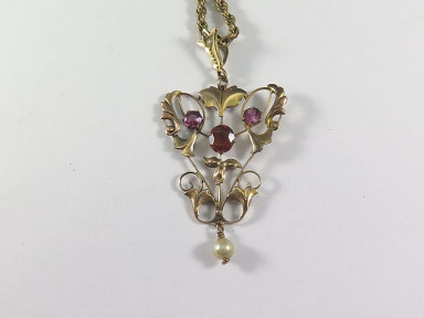 Lot Description:An Art Nouveau Garnet and 9ct Gold Pendant and Chain
