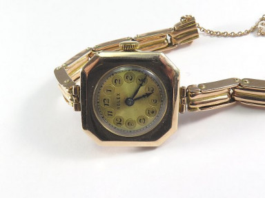 ith gilt 'telephone' dial steel hands; squared case by Wilsdorf & Davies; London import marks for 1922. Weight (all in) 24.2g. -
