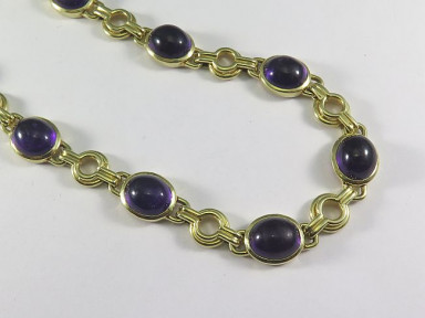 twelve cabochon amethysts rim set; Trio. Length 39.5cm. Weight 68.2g. -