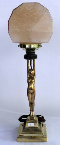 with Art Deco pink mottled shade. Circa 1930. Height 53cm. -