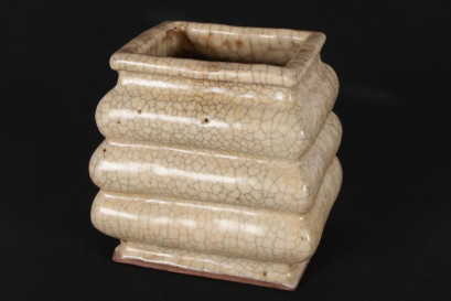 of lobed spreading rectangular form, in a beige glaze with crackle glaze, h 11cm -