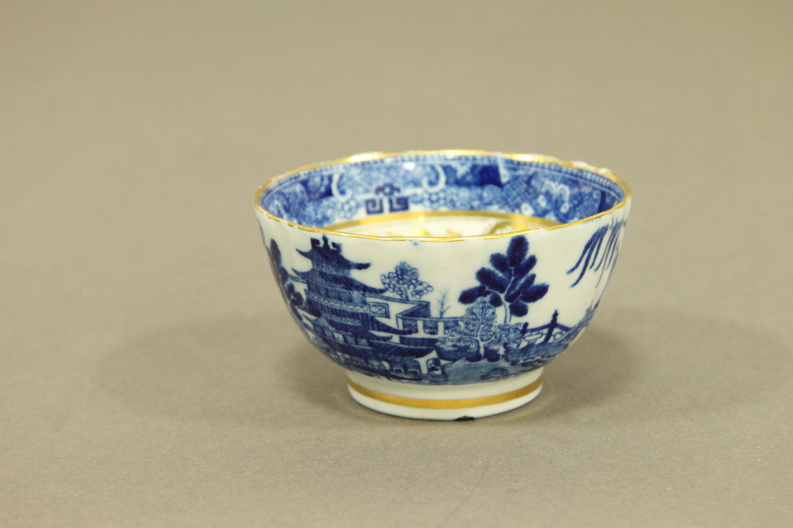 with willow pattern decoration and gilt border.