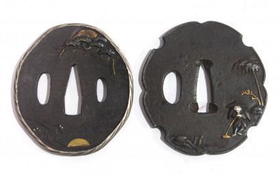 Lot Description:Two Bronze Alloy Tsuba, Sword Guards in Mixed Metal of Silver & Gold, Japan, Edo Period, 19th C.