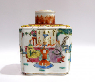 Lot Description:A Chinese Tea Caddy & Cover, Painted with Figures in Overglaze Enamels, Tongzhi Mark