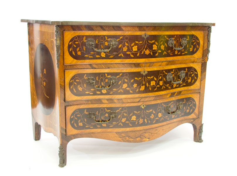 Lot Description:A 19th Century European Marquetry Serpentine Chest