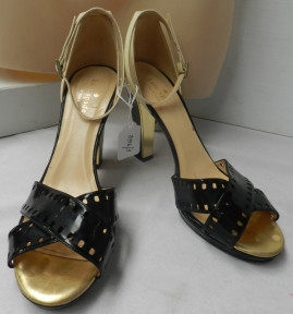 Cream & black patent leather with gold heel detail