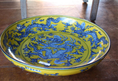 Lot Description:Impressive Chinese blue and yellow dragon charger
