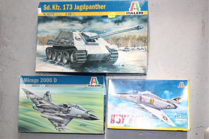 in 1:72 and 1:35 scale, military aircraft and tank to incl. Skyhawk A4EF, Mirage 2000D and a 173 Jagdpanther -