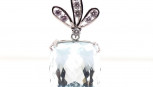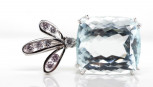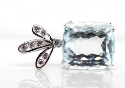 approx 1 light colour 34.6ct aquamarine and 8x pink diamonds with a"faint pink "9p" colour and VS1-P1 clarity estimated total weight 0.66ct. All set in white gold. With Valuation -