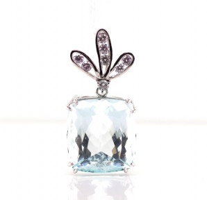 Lot Description:Aquamarine and pink diamond set 18ct gold pendant