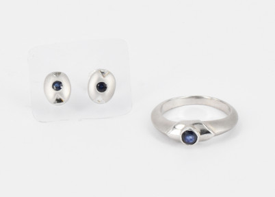 comprising a ring and a pair of studs, on sterling silver. Size P. Weight 6.5g -
