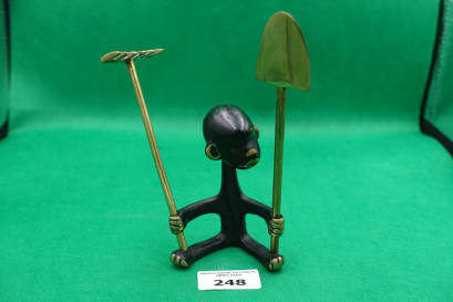 Lot #248 - Rare 1950's Walter Bosse Austria black patinated seated African style child with brass spade and rake