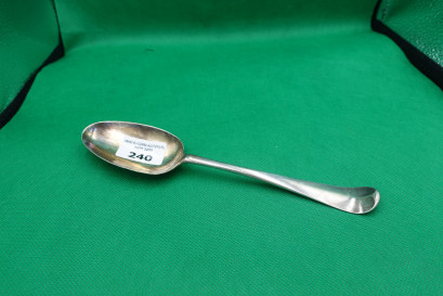 Lot #240 - Georgian sterling silver fiddle back pattern soup spoon