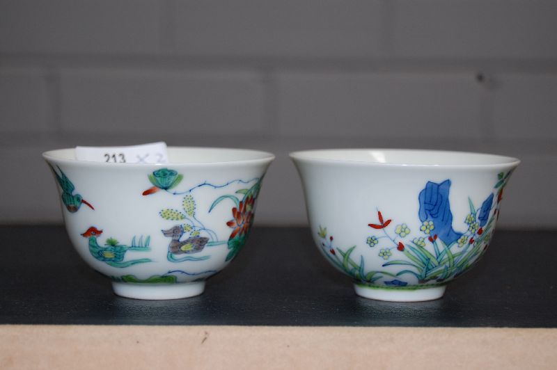 Lot #213 - Two small Chinese famille verte porcelain tea cups (2)