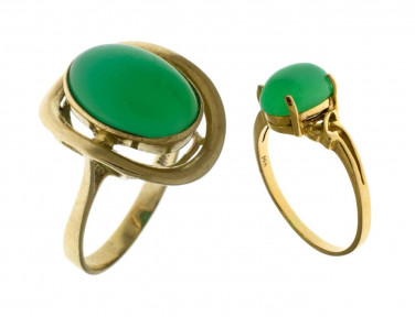 Lot Description:2 14ct Yellow & Gold Chrysophrase Dress Rings