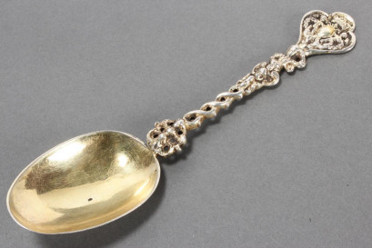 decorated with cherubs and coronet, above a large gilt bowl, total weight 60gm, l18cm -
