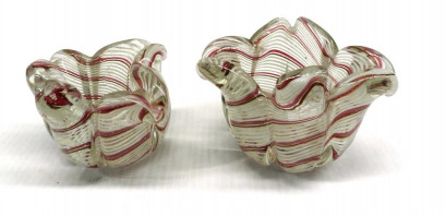 Lot Description:Two Pink, White & Gold Murano Latticino Glass Swirl Bowls, mid 20th Century