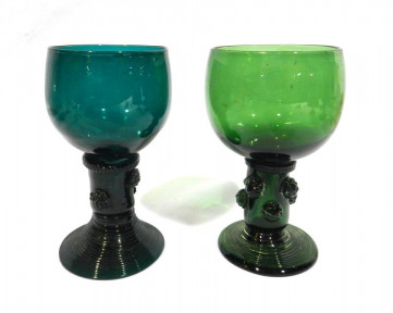 Lot Description:A Georgian Dutch Roemer & a Georgian English Bristol Wine Glass with Raspberry Prunts, c 1800