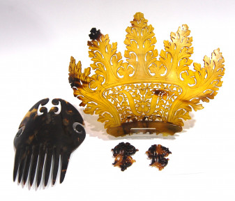 Lot Description:A Rare Large Spanish Tortoiseshell Mantilla Comb, & another Pacific Island Comb & Two Finely Carved English Initials, 19th C.
