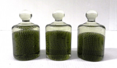 Lot Description:Three Olive Green Art Glass Control Bubble Paperweights
